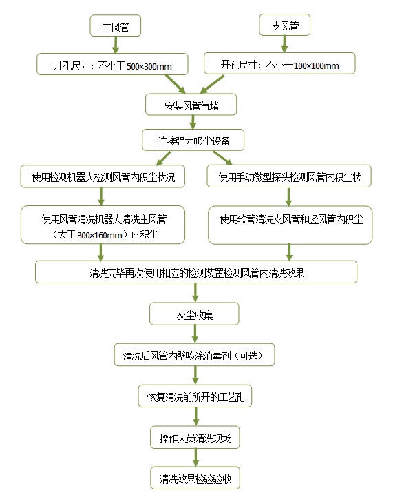 (2)檢測清洗后的風道內應目測無明顯殘留灰塵、無工程垃圾、管壁無積垢。