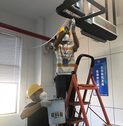 (1)對風道規格大于1000mm×550mm以上、出風口無法封堵等情況均采用近地吸塵清洗工藝完成。