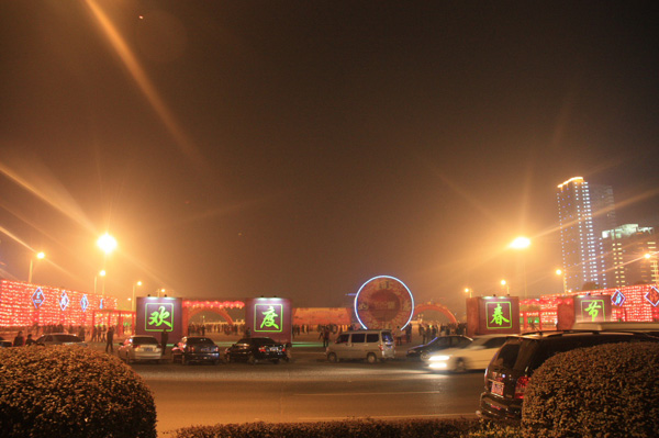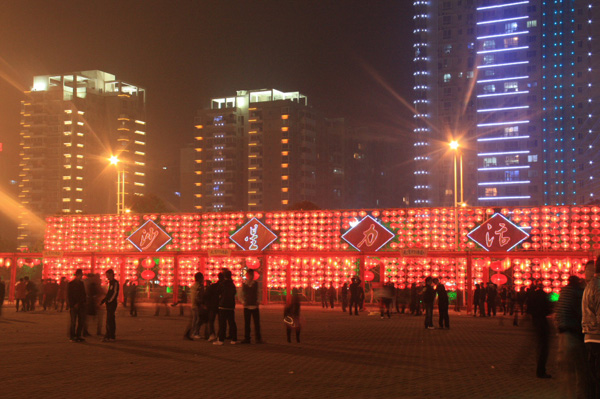 圖為春節(jié)期間星沙通程廣場亮化工程盛況