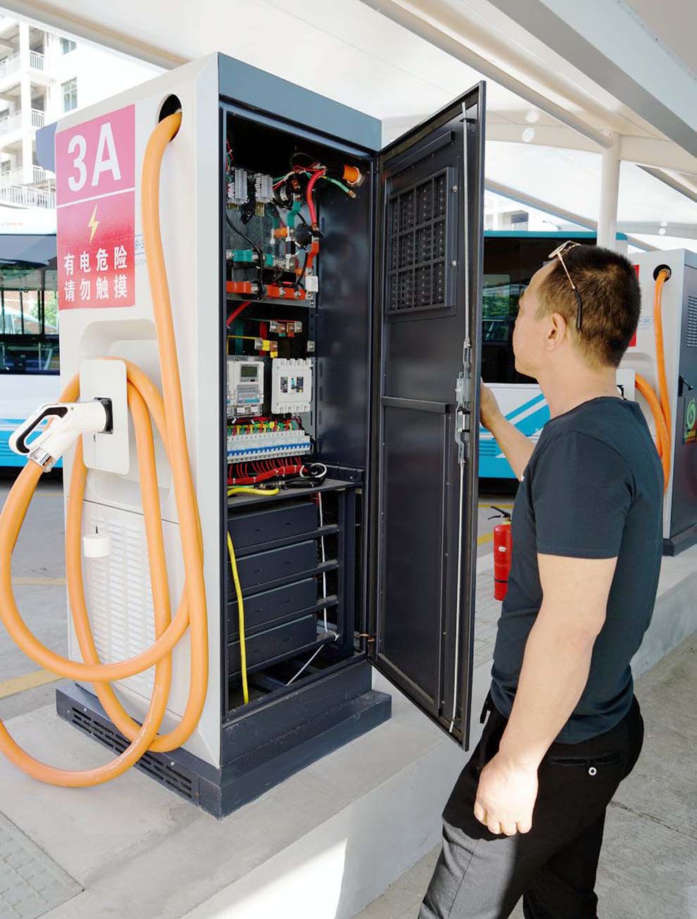 該充電站配備了120kw直流充電樁機組20臺,90kw直流充電機樁10臺,現代化膜結構停車棚1000余平方米。可同時對50臺新能源電動公交車進行充電服務,24小時可以累計完成300余臺新能源電動公交車充電服務。