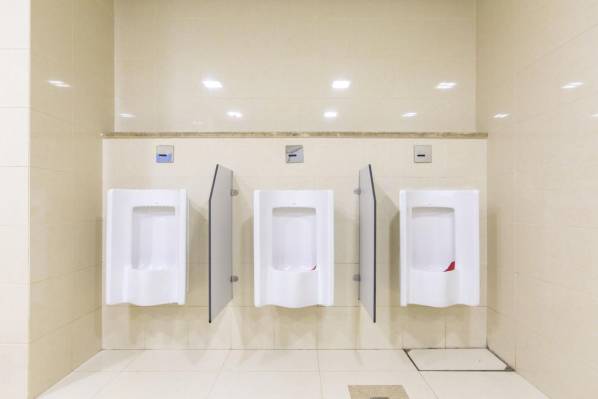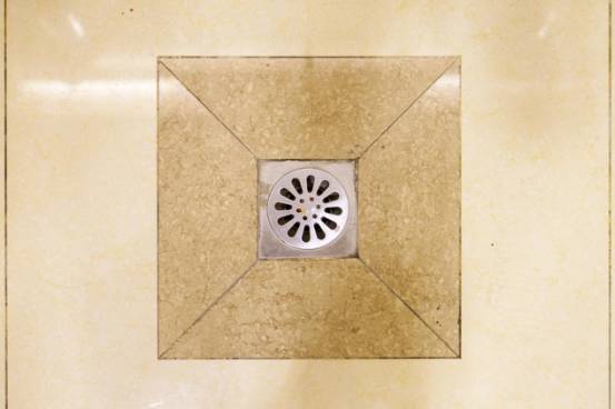 衛(wèi)生間內(nèi)潔具安裝位置準確,間距相等,高度一致,地漏布置居中。