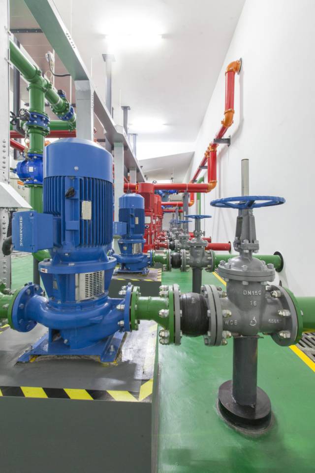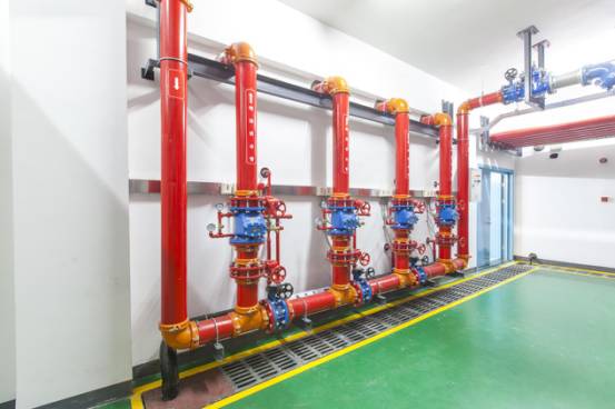 消防泵房閥門高度一致,油漆涂刷均勻,管道成排成線。