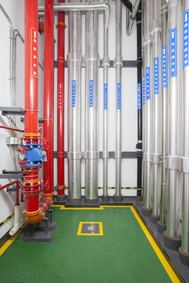 空調(diào)換熱機房布局合理,設(shè)備運行可靠,支架安全、可靠、大氣,標識清晰。