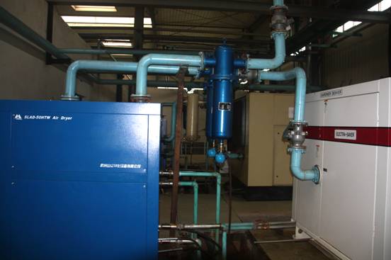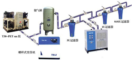 生產線動力壓縮空氣供應站大多采用螺桿、離心式水冷方式實現對空氣壓縮后經過濾、儲壓分配到各車間的生產線作加工動力用。