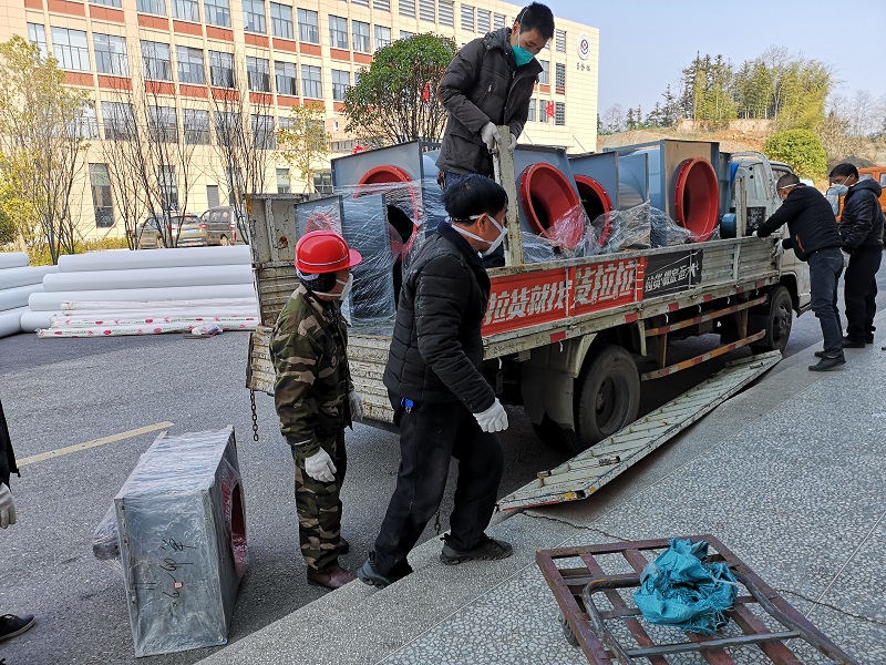 在現場指揮部的緊密組織下,我們迅速調集路口鎮周邊班組50名工人,財務采購排風電話、微信到處尋找風管材料和配件于下午五點到達工地,工人師傅連夜加班,把進度往前趕,為爭取第二天基本完成整棟八層的公共區域新風管道安裝卯足了干勁。