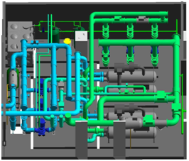 制冷機房BIM+工廠預制化裝配式施工,采用工廠流水線化預制加工工藝,代替傳統的工人現場制作,實行工廠預制、現場裝配,在預制加工廠集中進行文明施工和安全管理,減少發生安全事故的不確定因素,現場施工垃圾減少80%,現場裝配工序更加程序化、標準化、簡單化,避免長時間高強度的高空作業和交叉施工,減少發生生產安全事故的概率,并且完美實現了場內“零焊接”的綠色環保作業,全面提高了生產效率和施工質量。