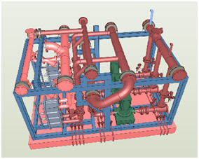 管道分段方案確定后,導出管道分段預制加工圖,交付工廠照圖加工,并導出設備基礎圖、設備定位圖、機房管線定位圖、支吊架定位尺寸圖等,交付現場照圖施工。這里需要注意的是,設備基礎施工完成后,深化設計人員需要復核基礎尺寸、位置等,反饋到模型當中進行適當調整,然后導出設備定位圖,傳統施工模式下不需要出具設備定位圖,而工廠預制化裝配施工要求精度高,管道加工誤差一般控制在土1mm,就要求設備定位安裝非常精確,必須有圖可依。