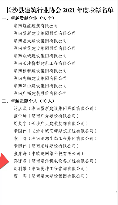 匠心建造 方能卓越——孫逢春總經理榮獲長沙縣建筑協會“卓越貢獻個人獎”獲獎感言