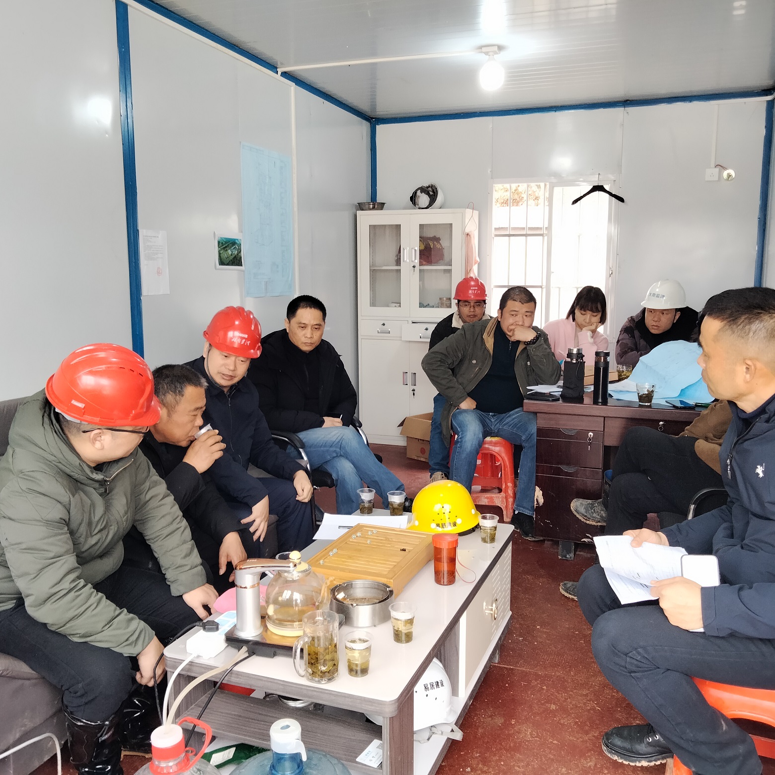 孫總在項目部辦公室召開現場會,強調安全生產的重要性和各級安全生產責任人職責,孫總重申項目經理作為安全生產現場負責人,項目經理一定要按安全生產管理體系要求,認真落實履行項目現場安全生產管理責任,杜絕一切安全生產和質量事故的發生,切實保護好大家的生命財產利益。