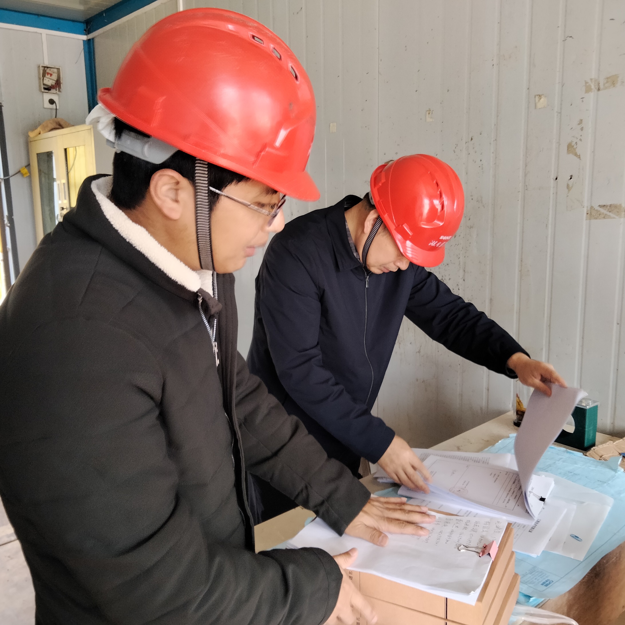 孫總到項目部辦公室檢查安全生產制度、安全生產責任人員是否公示上墻,安全技術資料,安全技術交底資料,安全教育及預案等資料是否完善