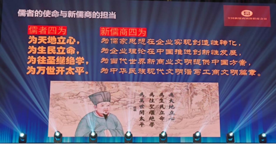 在演講的最后,黎紅雷教授慷慨激昂地指出,北宋儒學(xué)家張載曾經(jīng)提出著名的“四為句”:“為天地立心,為生民立命,為往圣繼絕學(xué),為萬(wàn)世開(kāi)太平”,成為一代又一代儒者的宗旨和使命。當(dāng)代新儒商在堅(jiān)定遵循這一天下儒者共同的宗旨和使命的基礎(chǔ)上,結(jié)合自身的特點(diǎn)及其面對(duì)的時(shí)代課題,提出“新四為句”作為自己的目標(biāo):“為儒家思想在企業(yè)實(shí)現(xiàn)創(chuàng)造性轉(zhuǎn)化,為企業(yè)理論在中國(guó)推進(jìn)創(chuàng)新性發(fā)展,為當(dāng)代世界新商業(yè)文明提供中國(guó)的方案,為中華民族現(xiàn)代文明譜寫(xiě)工商文明的篇章!”