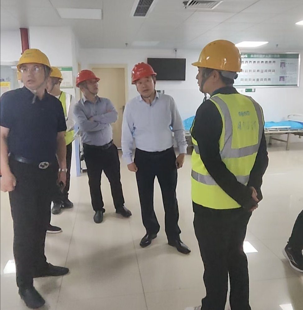 2025 年 4 月 22 日,湖南星澤 機電設備工程有限公司總經理帶隊,對長沙市八醫院星沙院區門診大樓、住院樓的中央空調、消防、弱電及裝修改造工程,開展了全面的施工質量與安全檢查。此次檢查涵蓋施工質量、安全施工、文明施工,以及施工與醫院營業交錯狀態下的復雜作業管理,尤其是不停業、不停設備運行,以及吊頂空間狹小、電線路、管路復雜環境下動火施工作業的防火安全等關鍵環節。