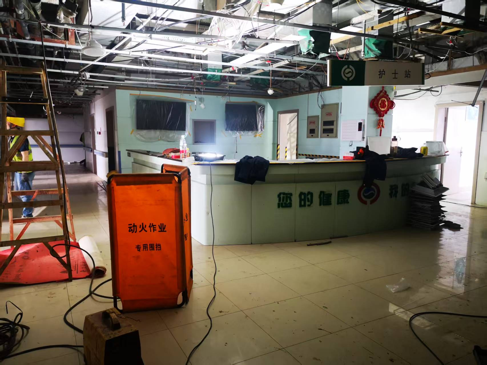 在施工過程中,項目部施工管理人員精心策劃、日夜堅守,嚴格遵守現場制定的安全制度,并與院方安保力量緊密配合,全方位防范火災安全風險。為減少對醫院正常運營的影響,施工團隊采用分區作業和夜晚作業模式,保障門診正常營業的同時,穩步推進病房的輪動改造施工。在使用電錘等電動工具作業上,先與院方溝通約定集中時段,通知病人注意配合,團隊通過合理安排,減少對醫院診療工作的影響和有效避免噪聲干擾病人休息。施工現場的臨時封閉設施更是選用高檔材質,色調雅白,與就診區內的建筑設施和諧統一,若非設有警告提醒,幾乎難以察覺正在進行施工作業。