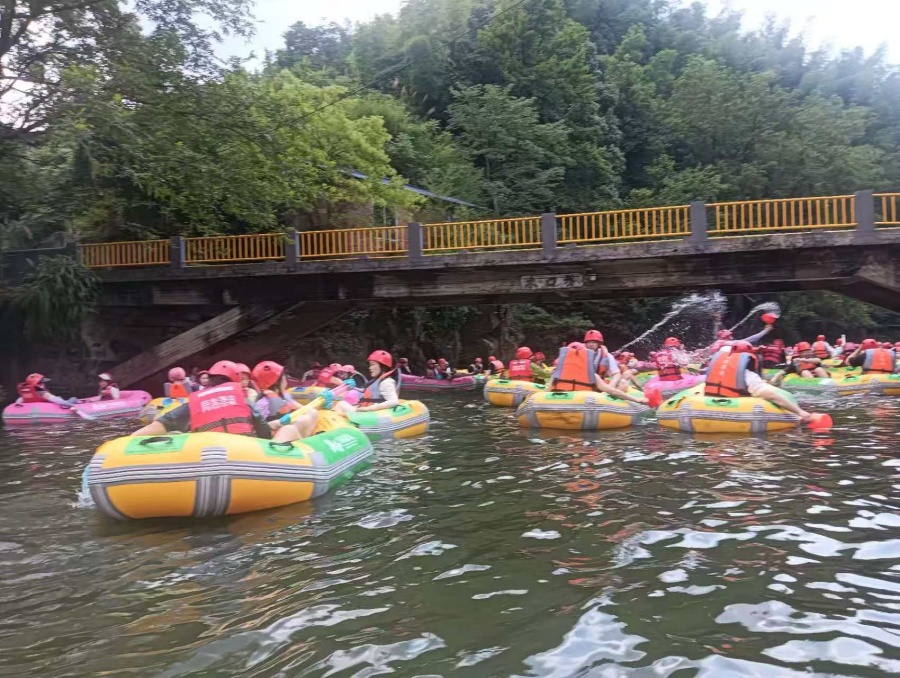 下午的重頭戲是漂流。皮艇剛下水就被浪花澆成落湯雞,大家干脆放棄“防御”,水槍、頭盔、安全帽全改成武器,認(rèn)識不認(rèn)識的都加入混戰(zhàn)。一個半小時后,全員濕漉漉上岸,嗓子喊啞,臉笑酸。