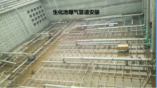 o 在生化池內安裝曝氣膜塊支架。