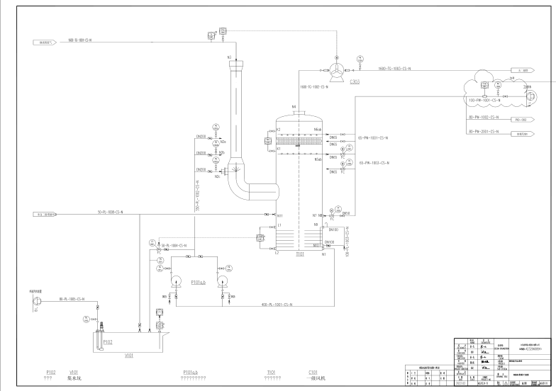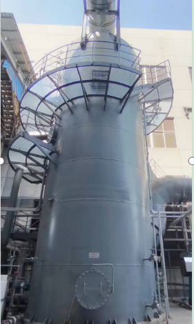 鋼制噴淋塔系統具備自動補水、自動排水、自動沖洗的功能,自動排水閥與塔釜液位變送器聯鎖。