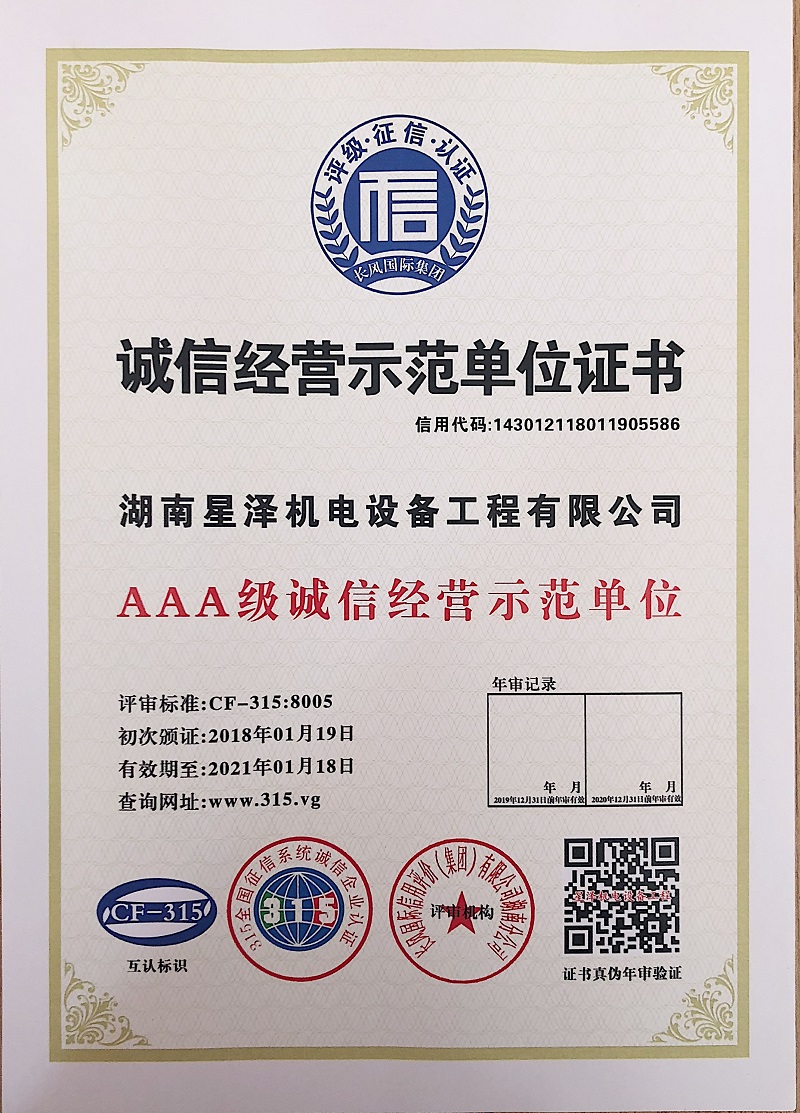 國家權威機構通過認證、審查針對我公司的信用記錄、經營狀況、財務指標、發展前景,結合國家及地方政府相關政策及現狀、本著公平、公正、獨立、客觀、科學的原則,評定我公司綜合信用等級為:AAA級